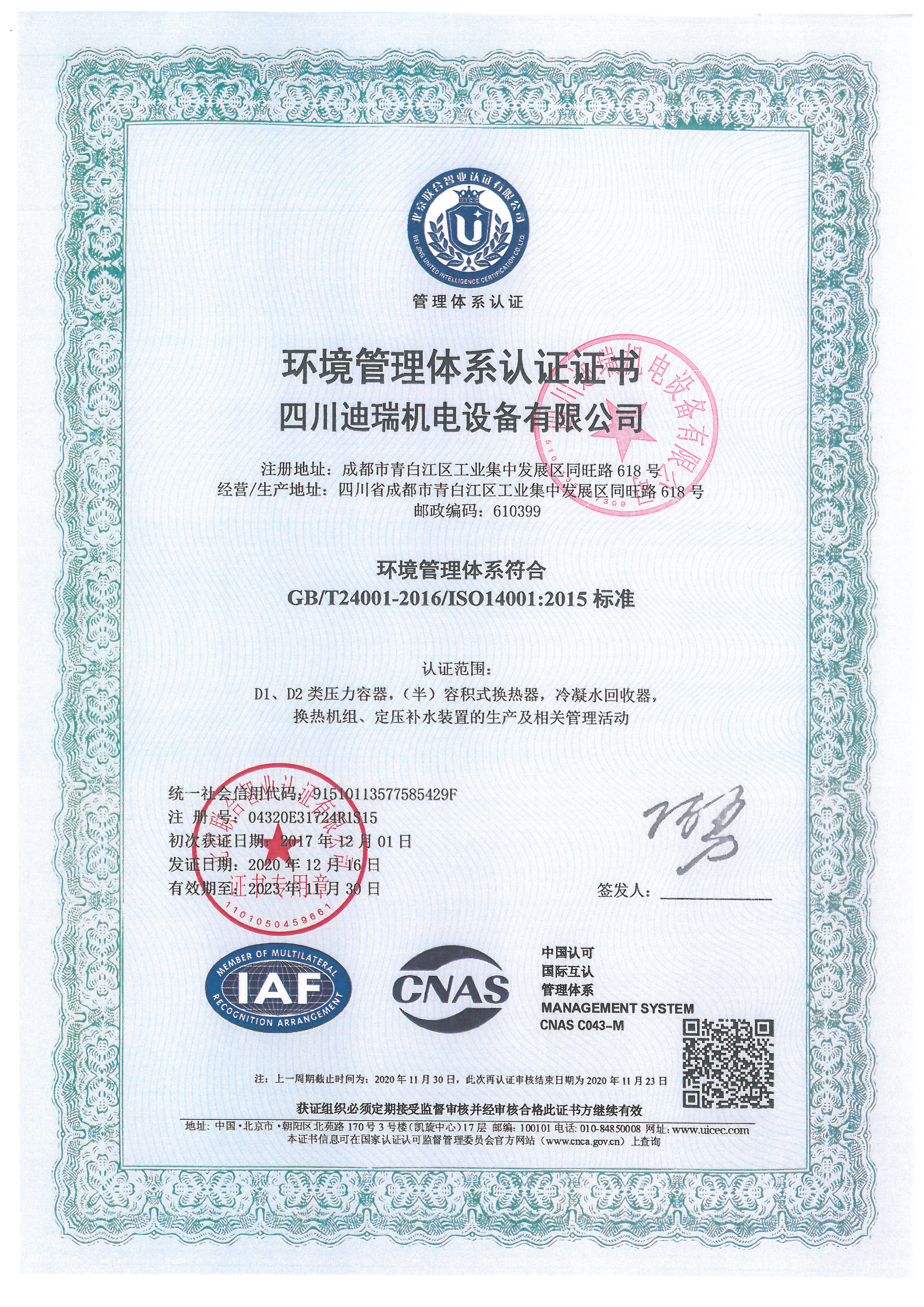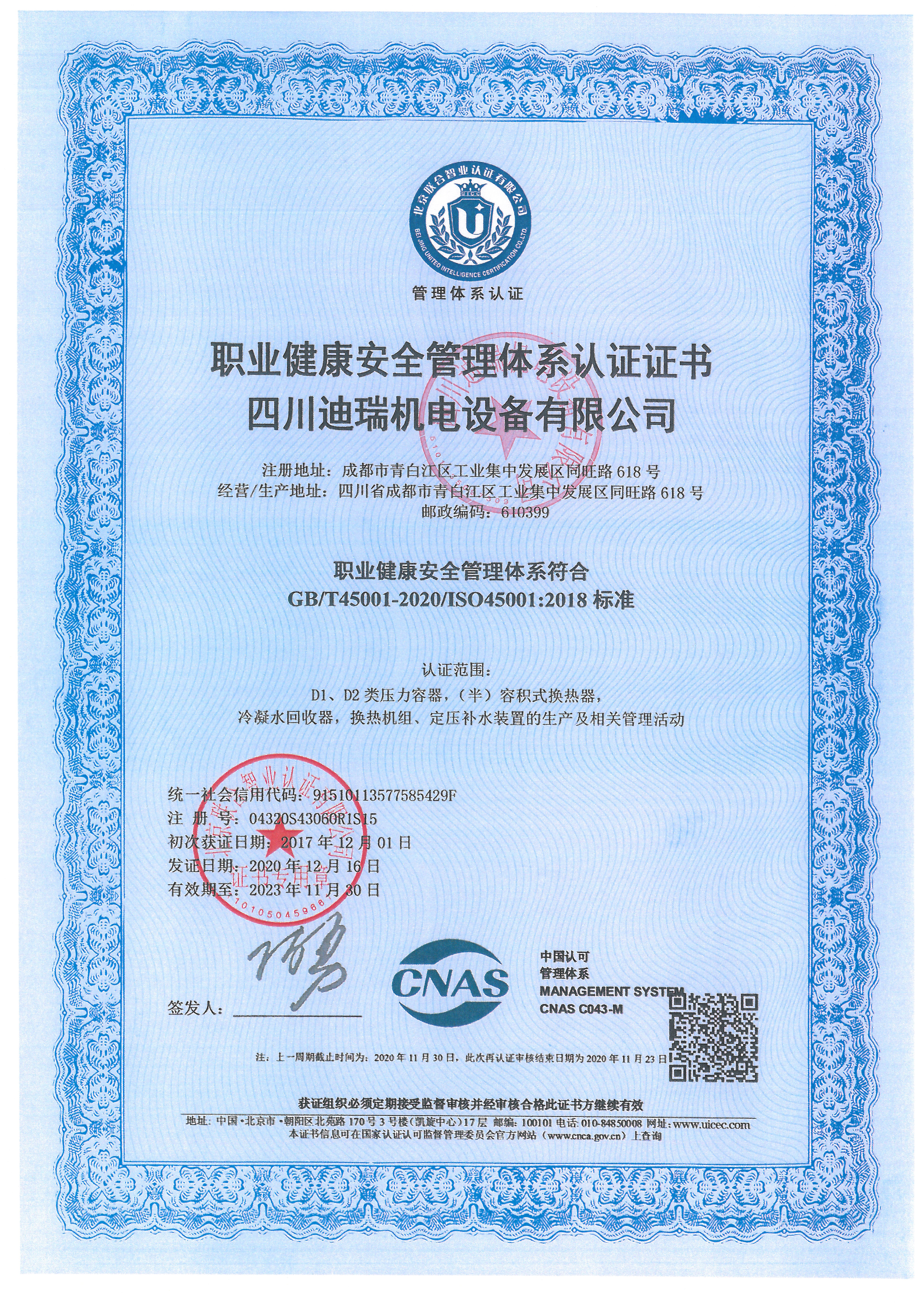壓力容器設(shè)計(jì)/制造證書